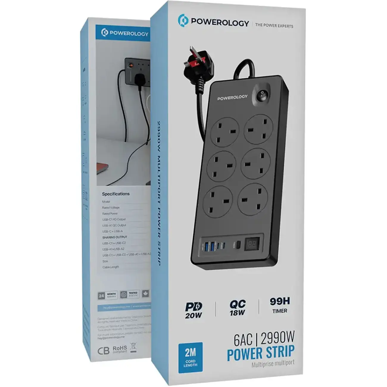 چندراهی Powerology PWCUQC046 یک محافظ برق با 6 پریز AC است که برای محافظت از وسایل خانگی و الکترونیکی در برابر نوسانات،